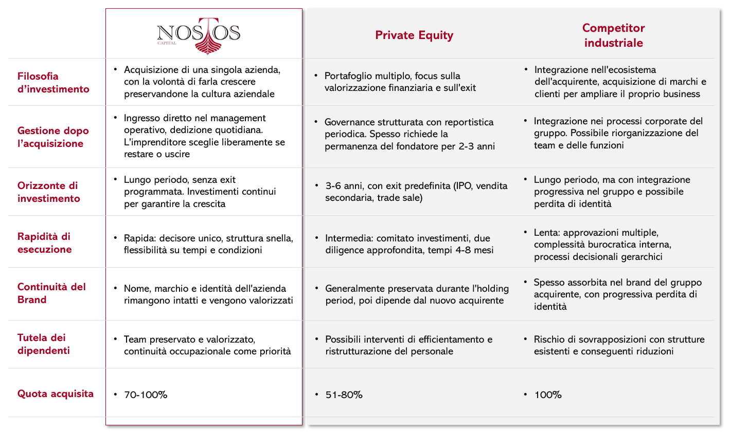 Nostos Capital nasce per offrire a un imprenditore una soluzione diversa: un partner che entra in azienda, la gestisce in prima persona e investe nel lungo periodo — preservando ciò che l’ha resa un’eccellenza.